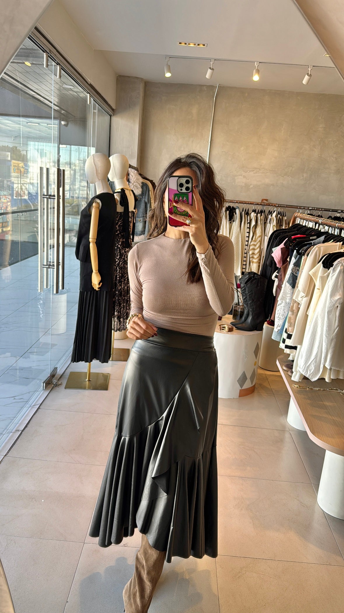 Blusa café manga larga