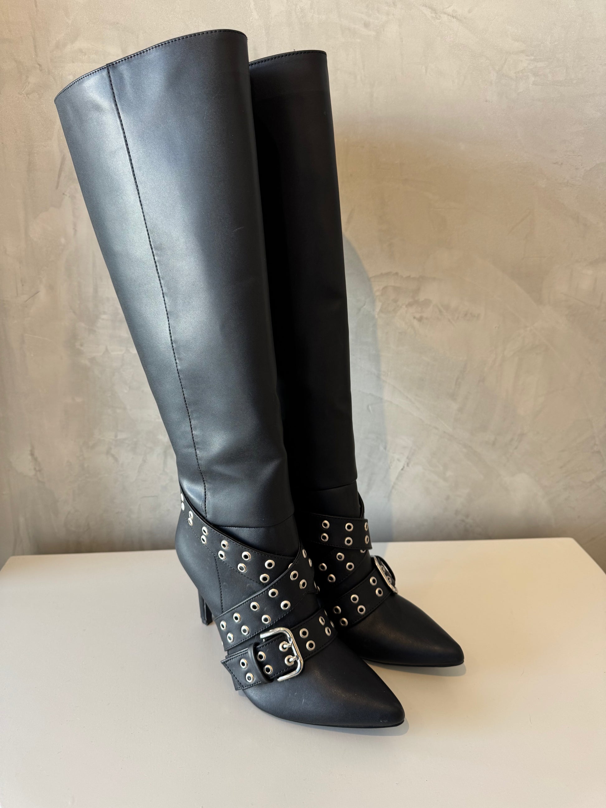 Bota negra larga hebilla