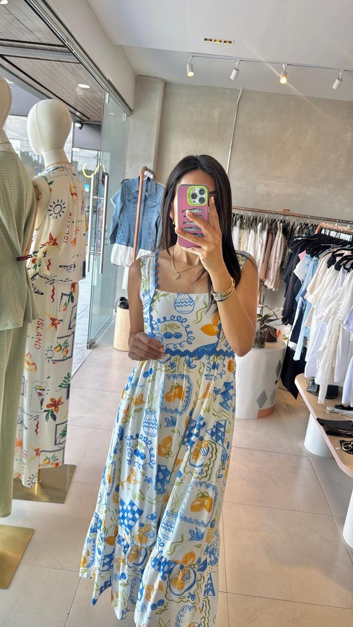 Maxi vestido blanco con azul