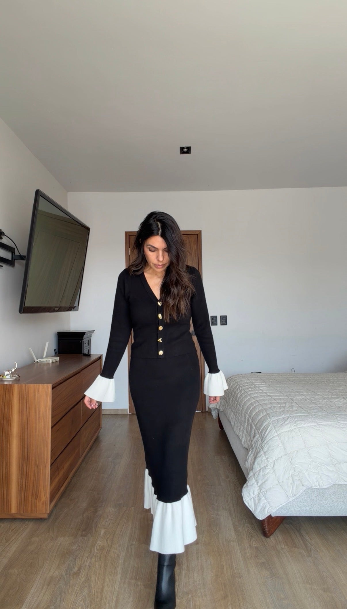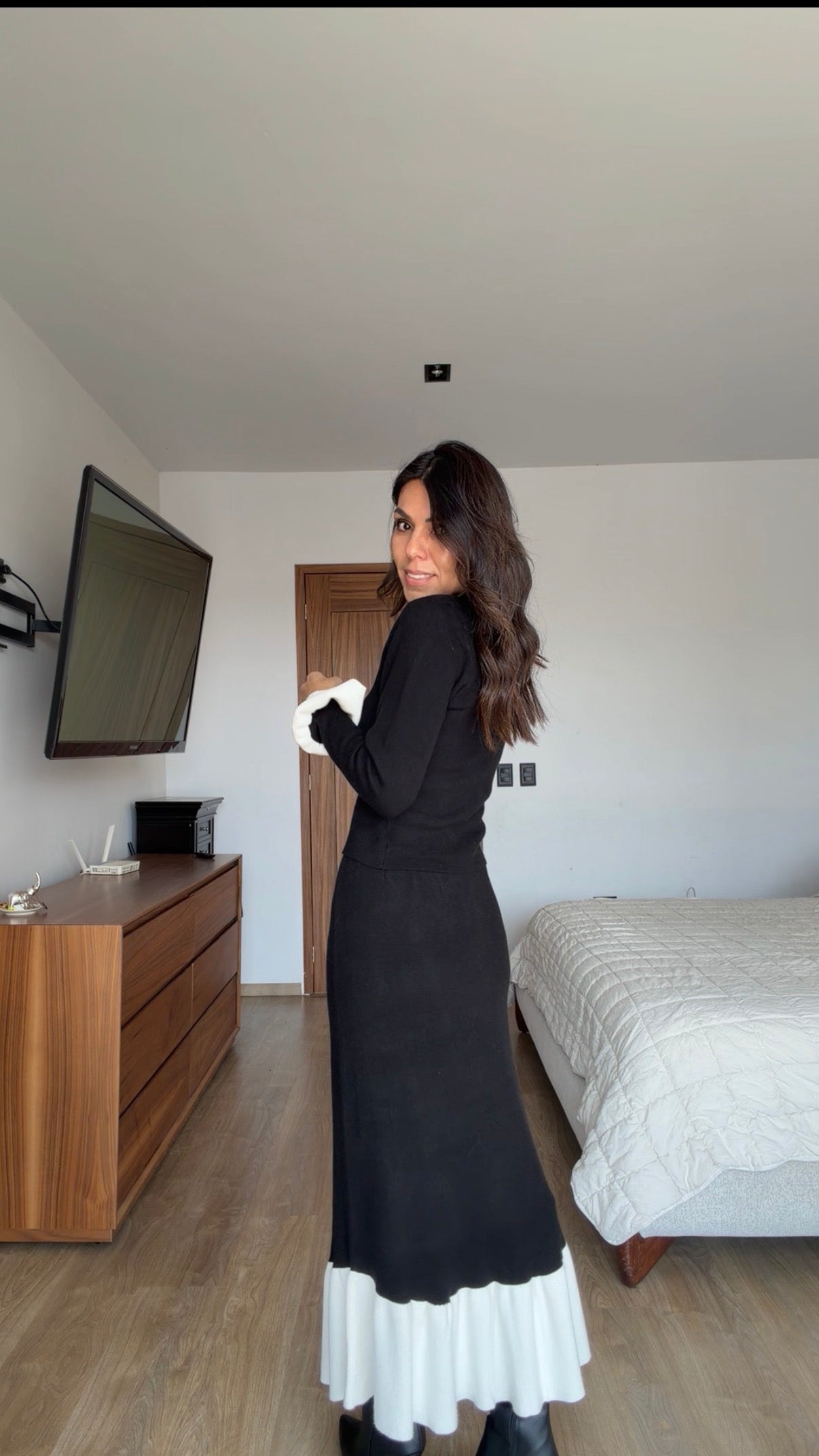 Set blanco con negro falda y suéter