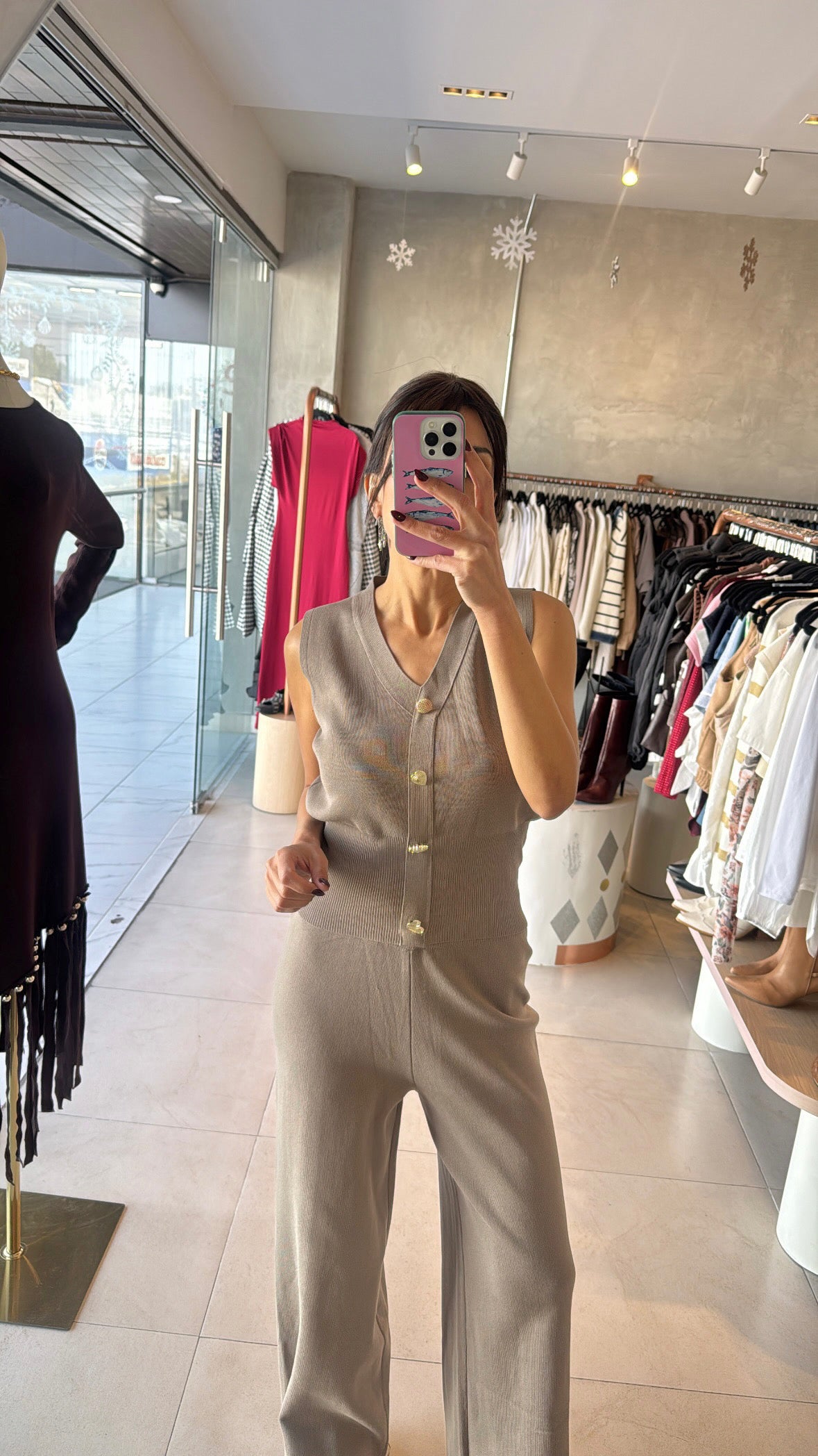 Set beige chaleco botones figuras
